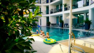 Beyond organised activities, think about whether the hotel grounds offer enough for kids to run around safely. A big outdoor space, a playground, some open lawn – these things matter more than a spa for families with young children.